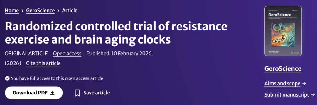 2026年2月国际期刊《老年科学》(GeroScience)发表的一项研究显示:“抗阻运动”真的是对大脑有用的“逆龄运动”!