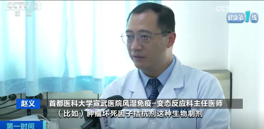 首都医科大学宣武医院风湿免疫-变态反应科主任医师 赵义:一般类风湿关节炎治疗需要用免疫抑制剂。靶向药物现在发展得非常快,比如肿瘤坏死因子拮抗剂这种生物制剂,还有小分子的靶向药物,像 JAK 抑制剂现在都已经得到广泛应用,而且副作用少。